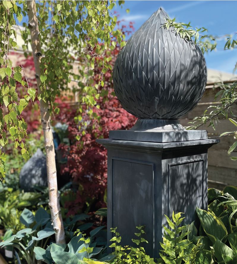 Artichokes ist der offizielle Name der A Place in the Garden Dekoration. Die Zierartichocken werden nach dem gleichen Prinzip wie die APG Leaf Balls hergestellt. Der Unterschied liegt in der sich verjüngenden Form. Die Artichocke war in den Gärten des französischen Landadels lange Zeit ein Zeichen von Reichtum. Der florentinische Händler Filippo Strozzi importierte diese Mitte des 15. Jahrhunderts von Sizilien nach Frankreich und Großbritannien. Hier trat die edle Kulturpflanze ihren Siegeszug durch Caterina de’ Medici 1533 an. Dieser Tatsache widmeten Jane und Richard Clifford von A Place in the Garden diese bezaubernde Gartendekoration aus Zink. Die Artichokes lässt sich als stilvolle Accessoires im Innenraum und im Außenbereich einsetzen. Solo agiert diese als Blickfang auf einem Tisch, im Blumenbeet oder geht eine gelungene Partnerschaft mit einer Säule ein. Einen ganz besonderen Reiz bildet die APG Zink Artischocke zusammen mit den APG Zink Säulen „Englischer Sockel“ und „Qube Podest“.