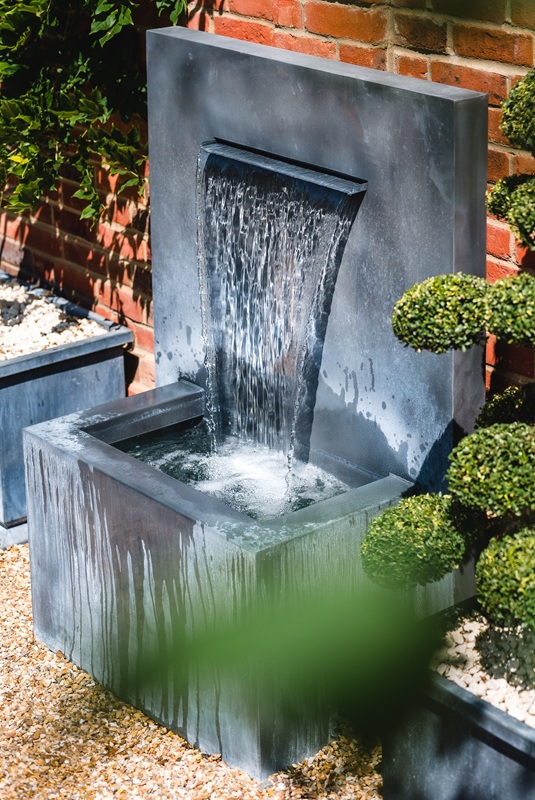 Wer lauscht nicht gerne einem tosenden Wasserfall und lässt sich von den besänftigenden Klängen einnehmen? Mit dem Wasserfall Gartenbrunnen wird diese natürliche „Entspannungsmusik“ Teil der Umgebung. Der rechteckige Zierbrunnen in verwitterter Zink-Optik agiert auf der privaten Terrasse ebenso brillant wie in einem Wartebereich. Im Innenbereich trägt der Zierbrunnen nicht nur optisch und akustisch zu einem angenehmen Raumambiente bei. Dieser fungiert auch als Luftbefeuchter. Schlicht ist die Ausführung der hohen Rückwand und des eckigen Wasserbeckens und gerade deswegen sehr imposant. Die verwitterte Zink-Patina schimmert in vielen Grautönen. Mit der Zeit wird diese heller werden, was das Farbspiel noch interessanter macht. Das moderne Wasserspiel kann als Wandbrunnen oder freistehend eingesetzt werden. Als Ergänzung zu den Zierbrunnen umfasst die diese besondere Kollektion auch attraktive Pflanzkübel. Diese ergänzen das moderne Design des Wasserfall Gartenbrunnen und faszinieren ebenfalls mit dem Spiel der Grautöne im verwitterten Look.