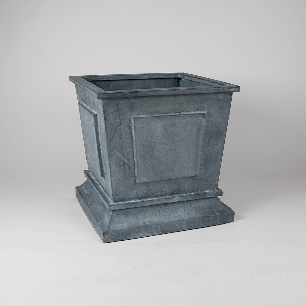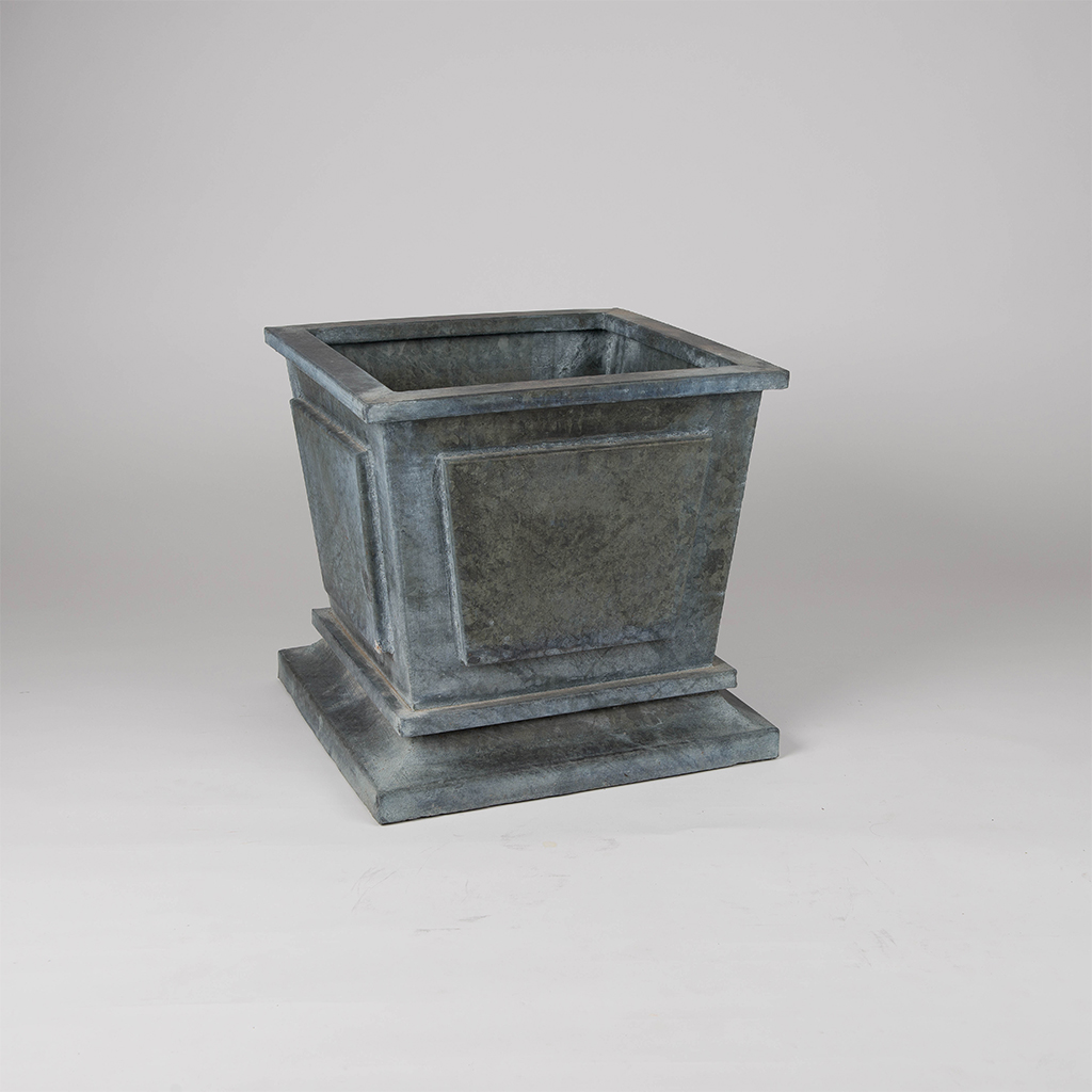 Stahlplatten in unterschiedlichen Stärken werden für die grauen Pflanzkübel zu einem Stück verschweißt. Das Zink-Finish in Antik-Optik wird mittels eines Spezialverfahrens aufgebracht. Vorher wird der Blumenkübel in der Wanne innen- und außenseitig feuerverzinkt. Der Bestellung liegen Gummistöpsel bei, um die Ablauflöcher in der Bodenplatte bei Bedarf zu verschließen. In fünf Größen stehen die grauen Zinkblumentöpfe mit verwitterter Antik-Patina zur Auswahl. Die Farbe wird durch den natürlichen Oxidationsprozess mit der Zeit noch heller.