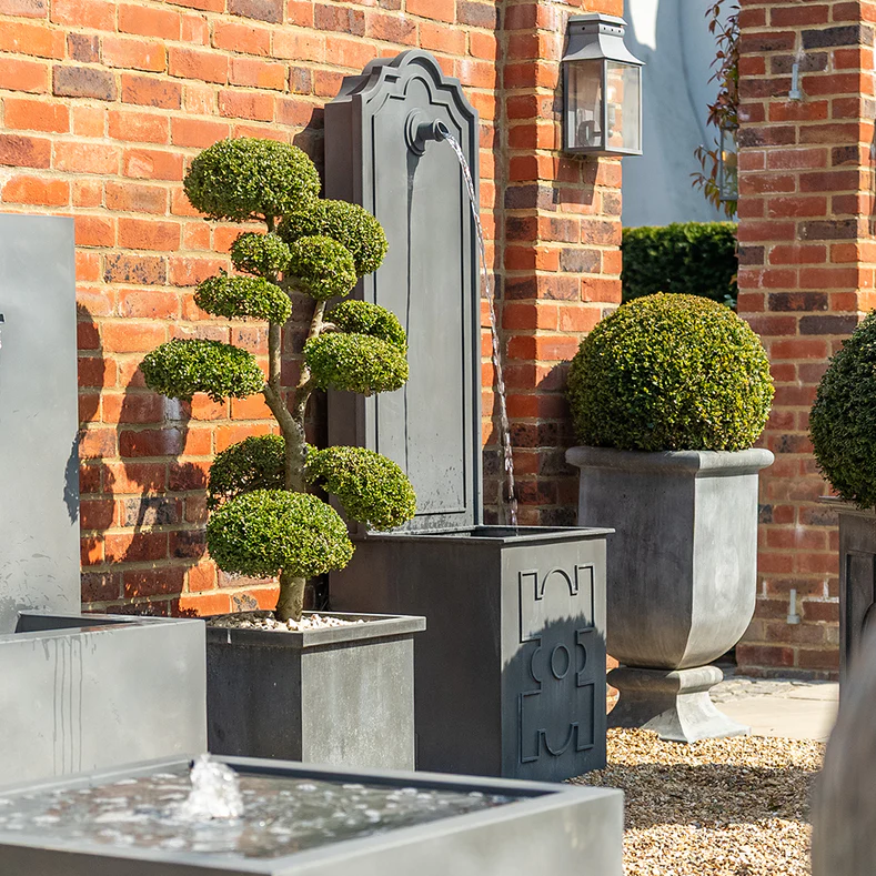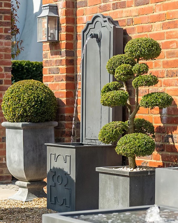 Die fein gearbeiteten, erhabenen Ornamente und das leise Plätschern des Wassers verleihen jedem Garten eine Atmosphäre von Ruhe, Wertigkeit und zurückhaltender Grandezza.