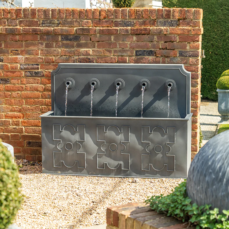 Ursprünglich wurden solche Formen im 18. und 19. Jahrhundert oft aus massivem Blei gefertigt – einem Material, das wegen seiner Witterungsbeständigkeit, seiner angenehmen Schwere und der edlen, mit der Zeit entstehenden Patina geschätzt wurde. Unsere Wasserspiele übertragen diesen historischen Ausdruck ins Heute – gefertigt aus hochwertigem, verzinktem Stahl, der bleibeständig und pflegeleicht ist, dabei aber die gleiche visuelle Tiefe und Anmutung wie echtes Blei vermittelt.